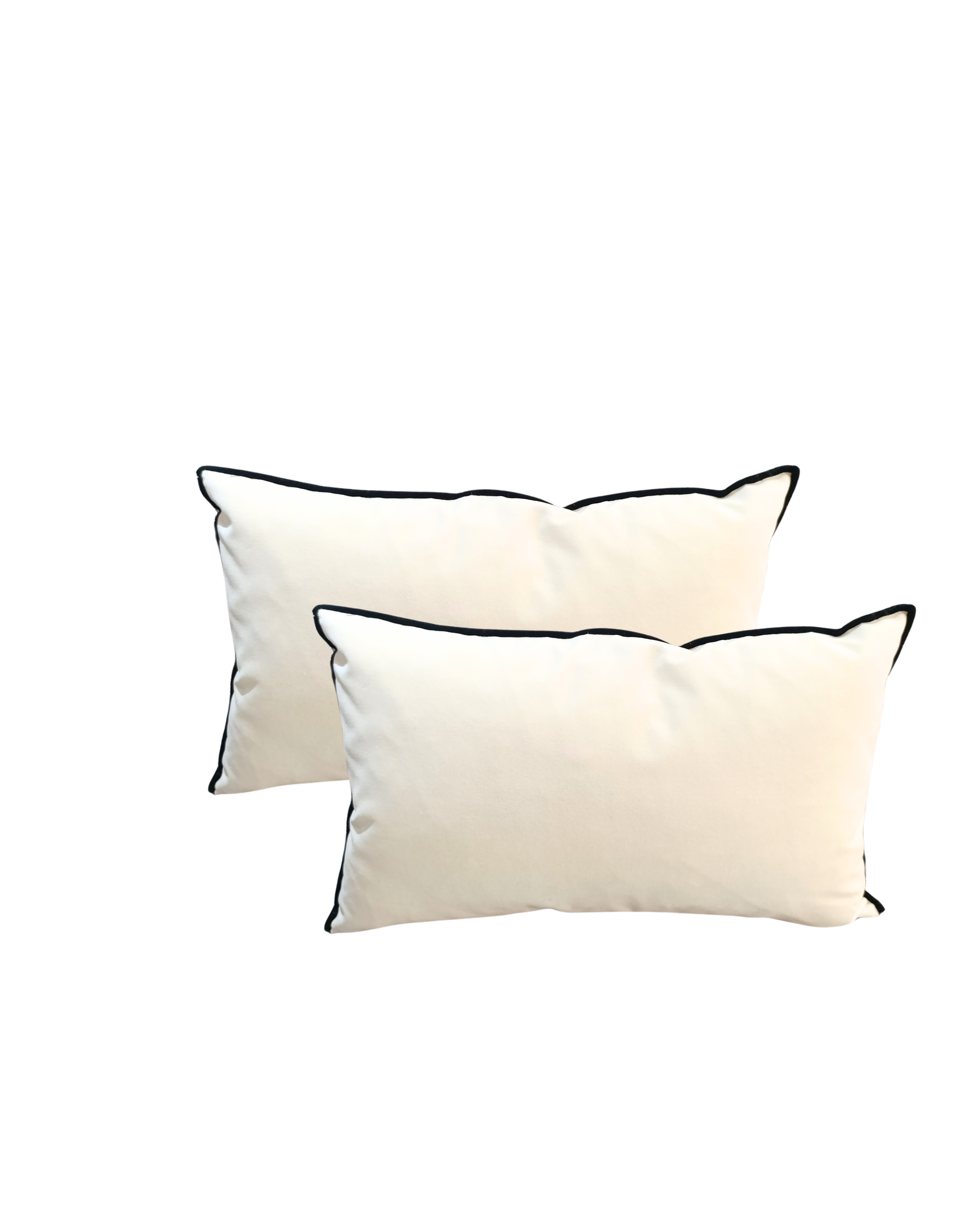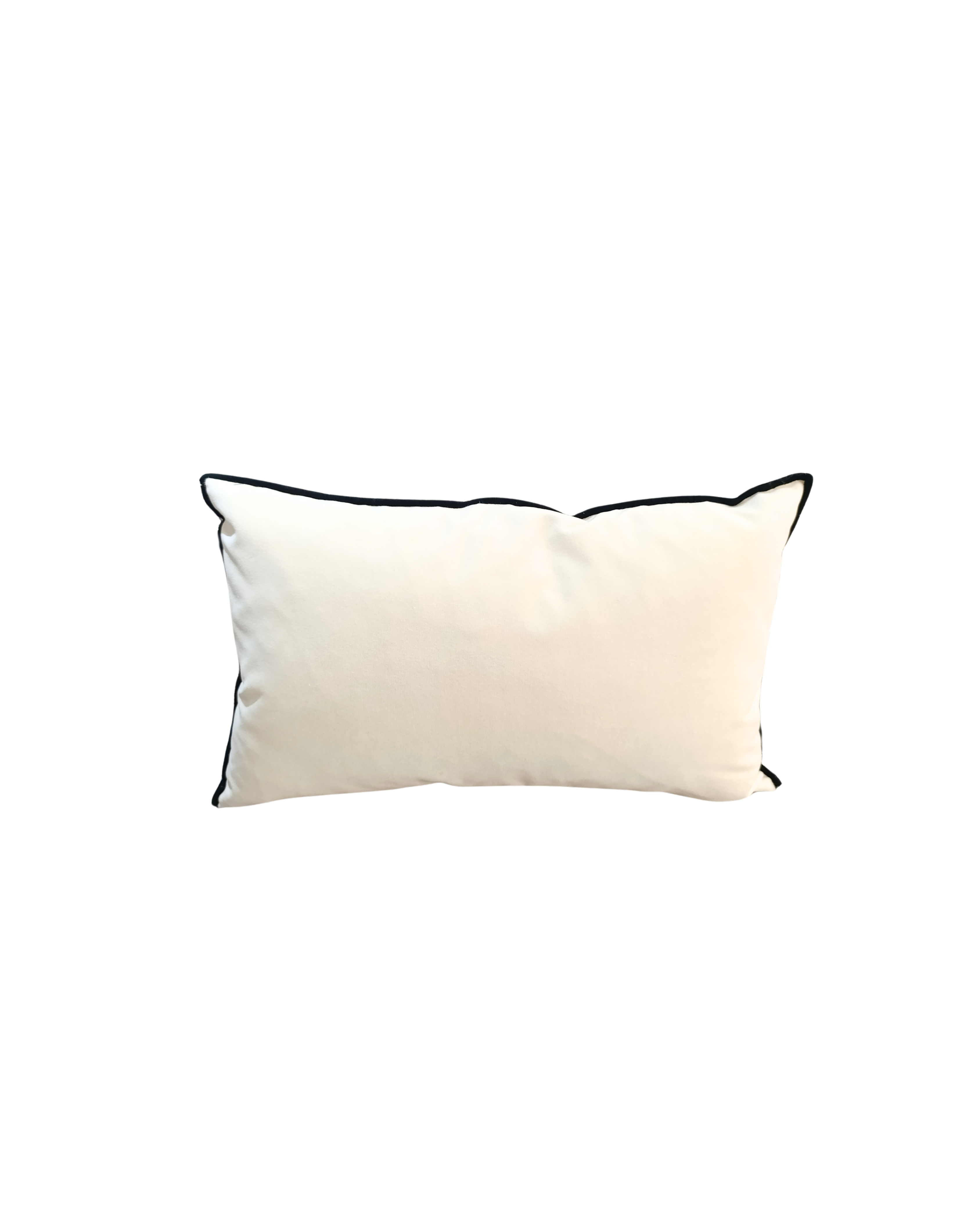 Coussin Lombaire rectangulaire Luxe en Velours Beige avec Passepoil Noir (52x32 cm)